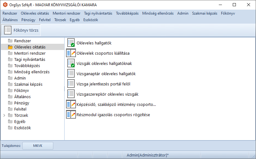 Bejelentkezés után a főmenü jelenik meg, innen érhetjük el a program ablakait.